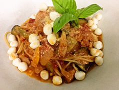 生ハム&季節野菜のガーリックパスタ